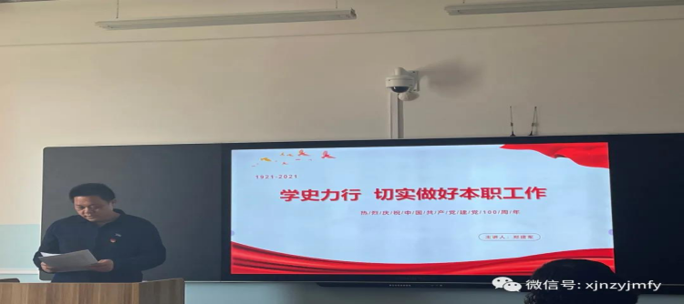 《学历力行 切实做好本职工作》。首先,郑建军书记带领全体教师回顾了中共一大在南湖的召开到十九大确立不忘初心,牢记使命。100年来,那一幅幅波澜壮阔的画面栩栩如生,刻在我们心里的那一些记忆永远值得我们铭记。其次,郑书记结合自己在南疆访亲时结识的88岁老党员麦提图尔荪·玉素甫的故事,要求全体教师要严格遵守党史学习教育“学史明理”、“学史增信”、“学史崇德”、“学史力行”目标任务要求,积极践行共产党员的初心和使命,传承好共产党人的高尚品德,用实际行动,为群众多办实事、多办好事。最后,郑书记结合分院党建工作,意识形态领域的工作以及顶岗实习工作等,要求全体教师通过学习党史,切实履行好本职工作,立德树人,争做学生的四有好老师。