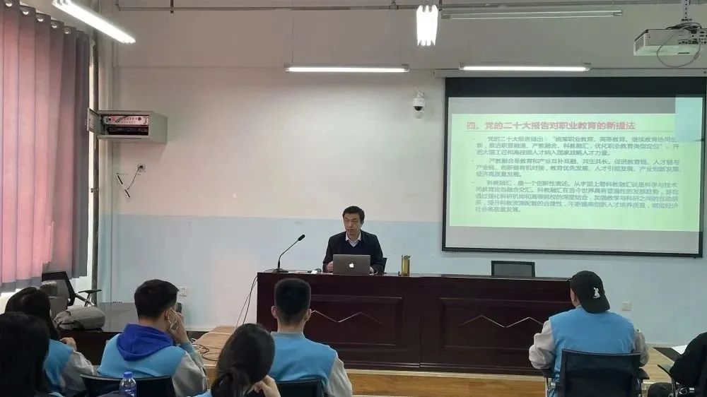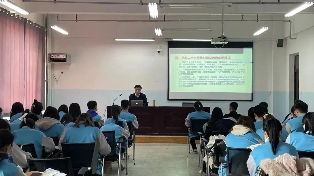 3月6日上午,经济贸易分院党总支书记海刚为2022级学生做开学第一课《学习宣传贯彻党的二十大精神,让青春绽放绚丽之花》专题讲座。主要讲述了大会主题的内容、五个把握、两个“确立”、六个必须坚持、五个重大原则、两个维护、四个自信、中国共产党的中心任务、中国式现代化的中国特色。
