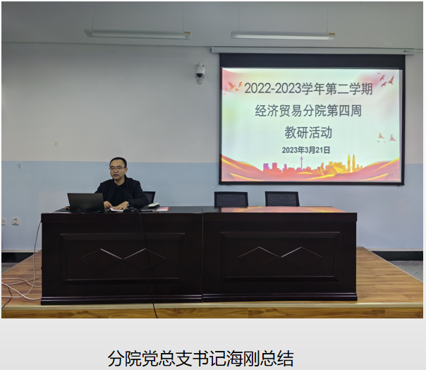分院党总支书记海刚做总结发言。海刚要求各专业负责人要对专业人才培养方面存在的问题进行精细化诊断和针对性改进,注重改进措施的高标准和可落地。海刚提出,此次教研会是分院认真贯彻党的二十大和全国两会精神的重要会议,是推动分院专业高质量发展的会议。分院教师要凝聚共识,形成各专业争先创优的浓厚氛围,抢抓机遇,团结拼搏,奋力谱写分院发展新篇章。