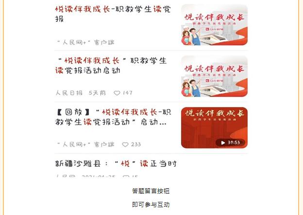 齐声读党报,共抒爱国情。同学们齐读党报的声音是那么的洪亮,铿锵有力。通过学生齐读,让学生在熟悉又特别的情景和方式中,熟悉党报、走进党报。不断弘扬爱国主义精神,激发学生爱党、爱国的热情,并以此激励学生们在生动鲜活的爱国主义教育中,进一步了解国情民情,强化责任担当,在为全面建设社会主义现代化国家的砥砺奋斗中展现青春力量,书写精彩人生。