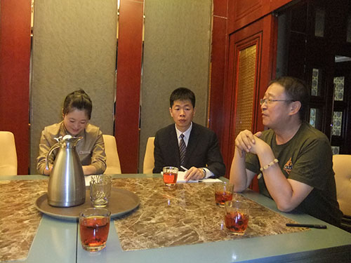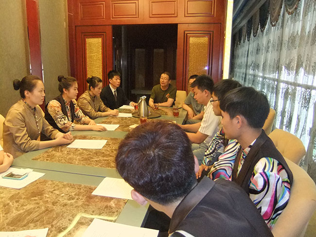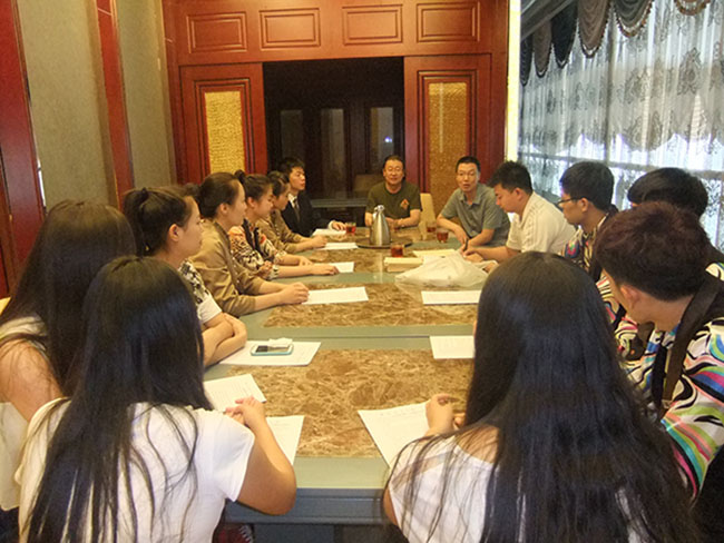 我院冯开红副院长、教学就业办王青老师、专业实习指导老师蔺剑老师在新疆昆仑宾馆与2013高职会展班的同学座谈。