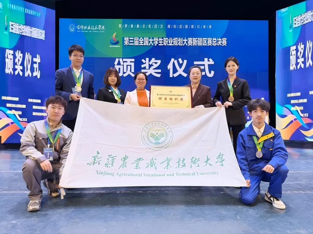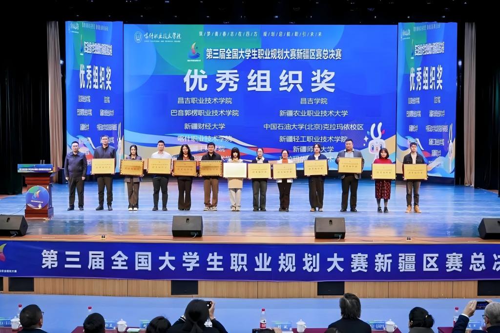 近日,第三届全国大学生职业规划大赛新疆区赛总决赛在喀什职业技术学院落下帷幕。新疆农业职业技术大学在此次比赛中共斩获金奖1项、银奖2项、铜奖2项,9位教师获评优秀指导教师,学校荣获优秀组织奖。