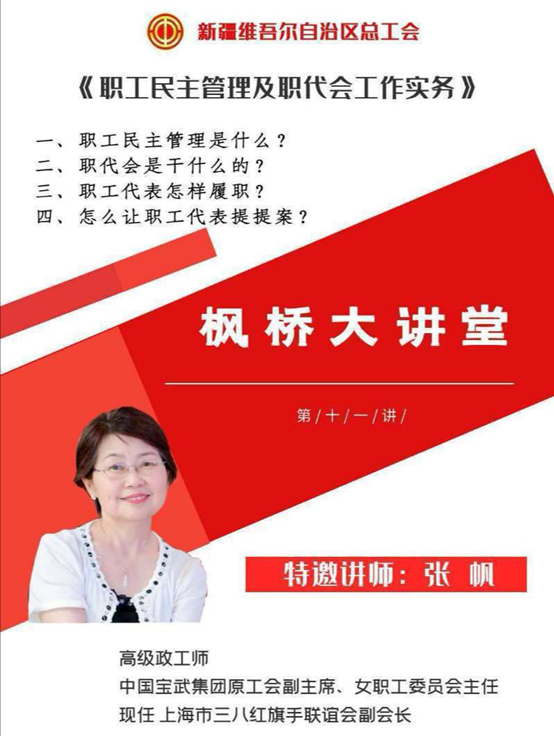 本次讲座张帆副会长从四个方面进行了讲解:一、职工民主管理是什么?二、职代会是干什么的?三、职工代表怎么履职?四、怎么让职工代表提提案?张帆副会长结合自身工作实际,深入浅出的讲解让大家获益匪浅,大家对职代会作为企事业单位民主管理的基本形式有了进一步的了解,对职工代表大会发挥着组织动员全体员工参与管理、融入中心的重要作用有了深刻的认识,掌握了如何提提案,作为代表如何正确履职等。