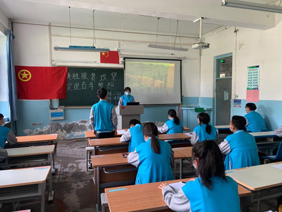 课程进行当中,同学们积极在班级群中发表自己的感言,2019动物医学4班团支部古丽胡玛尔这样说道:“作为一名团员通过参与这次主题团日活动,我深刻认识到作为团员的我们应该要时刻牢记党和国家的恩情,紧跟党和国家的步伐,珍惜现在的幸福生活,好好学习,努力奋斗,将来回报党、奉献我们的祖国。希望学校持续开展脱贫攻坚相关工作,加大学习宣传力度,采取各种有效方式将党和国家的声音传递给学校每一位师生,为实现全面建成小康社会贡献力量。”