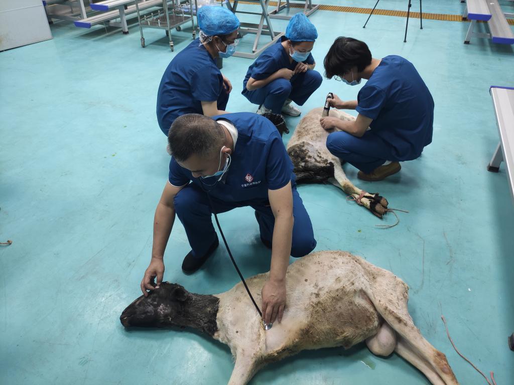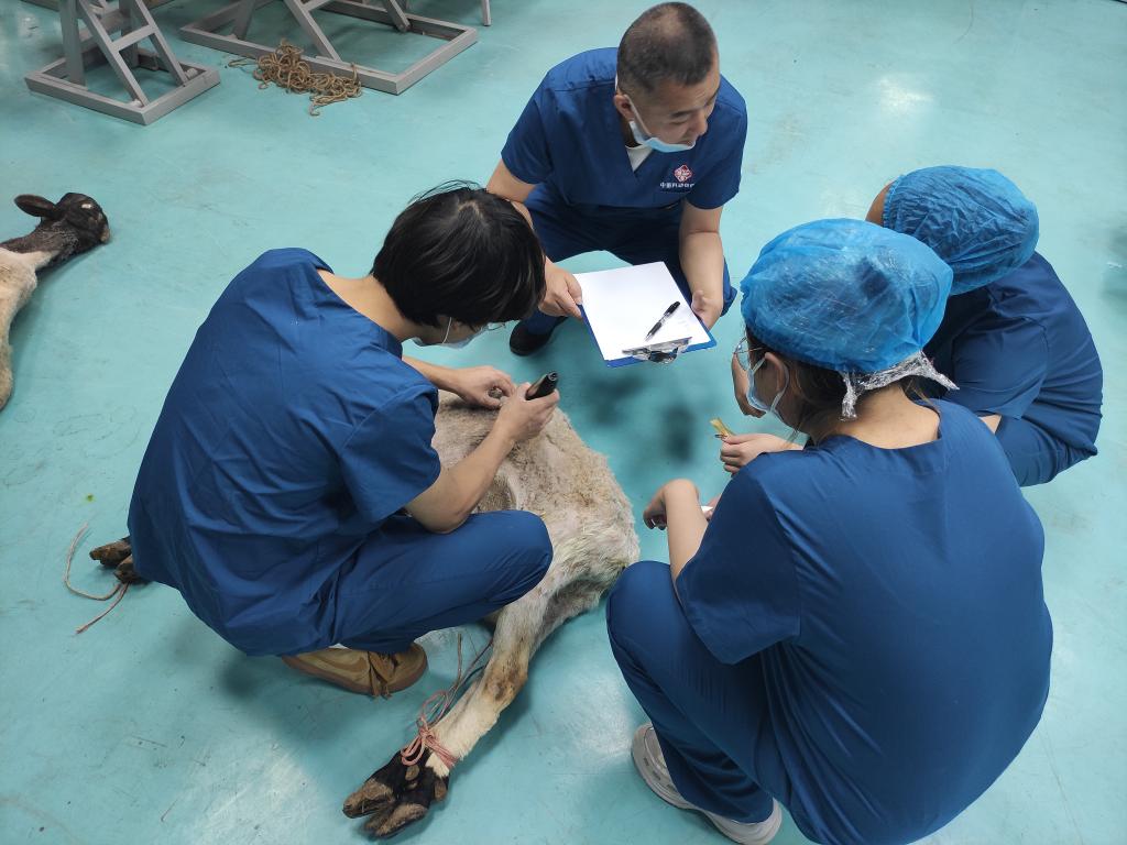 6月8日上午,动物医学技术创新服务中心接诊了两个特殊的病号,两只头黑身子白,身体消瘦却挺着大肚皮的杜泊公羊前来寻医问药,希望新疆农业职业技术学院的专家可以救救这两只羊,动物科技分院李亚林教授用老百姓喜闻乐见的交流方式了解了这两个特殊“病号”的基本情况,通过简单的检查,利用自己丰富的临床经验立马做出准确诊断,当机立断,召集了三位同学作为助手组成临时手术小组,制定手术流程,实施瘤胃切开手术。