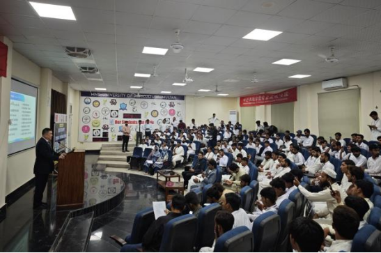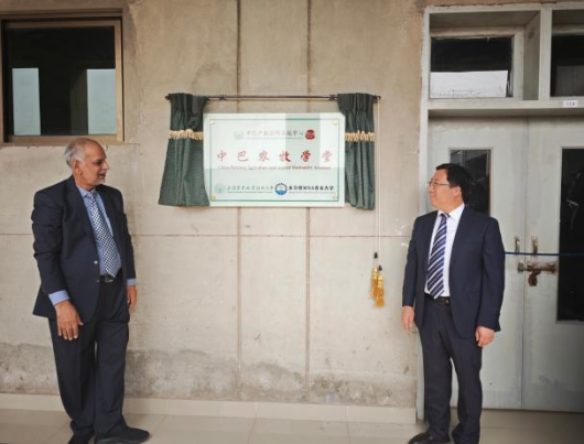 在巴基斯坦旁遮普省木尔坦MNS农业大学,代表团与木尔坦MNS农业大学签署教育交流与合作备忘录,正式挂牌运行“中巴农牧学堂”、揭牌“中巴农牧学堂企业培训基地”,建立了稳固的合作关系和交流机制。双方围绕两校优势院系、特色专业的发展与合作、技术技能人才培养、教学标准互认、师资技术团队共建等核心议题达成共识。代表团参观了大学基因检测实训室、动物营养测定实验室等13个专业实训基地,与巴方教师团队就专业课程共建、实训资源互通达成初步合作意向。合作框架下,我校将向巴方引入成熟的家畜繁殖技术与动物诊疗技术,通过实地走访、挂牌运行、技术培训等,促进合作走深走实,为当地畜牧业及经济发展注入新的活力。