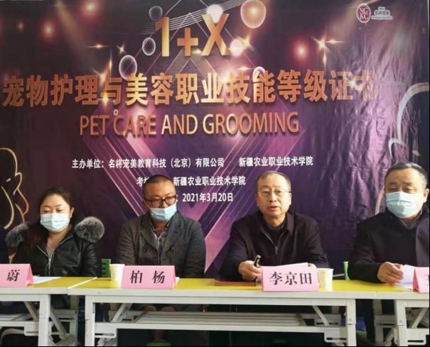 学院院长李京田代表学院为“1+X"宠物护理与美容考核站点授牌仪式发表了热情洋溢的讲话,他指出:学院作为新疆第一家宠物护理与美容等级证书考核站点,在全疆中高职院校中首次开展宠物护理与美容“1+X"职业技能等级鉴定,深感荣幸。在考核站点成立后学院衷心地希望专业与公司紧密合作执行国家建设标准做好考核站点建设和高质量的证书训考工作,丰富培训内容,健全证书训考制度,规范教学管理,把“宠物护理与美容”考核站点打造成校企合作全国高职院校“1+X”证书试点的样板站点。学院将一如既往地支持考核站点成立后的证书训考条件建设。在此也希望动物科技分院要不断加强与名将宠美教育科技有限公司的联系,培养优质师资,将国际宠物美容先进的技术和理念带进课堂,高质量开展宠物美容行业人才的培养与训练,为培养大批宠美业高级技术技能型优秀人才做出积极的贡献!