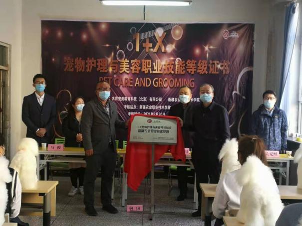 2021年3月20日, 学院在动物科技分院实验实训中心举行了"1+X"宠物护理与美容考核站点授牌仪式,并进行了全疆首场宠物护理与美容"1+X" 职业技能等级证书考评鉴定。