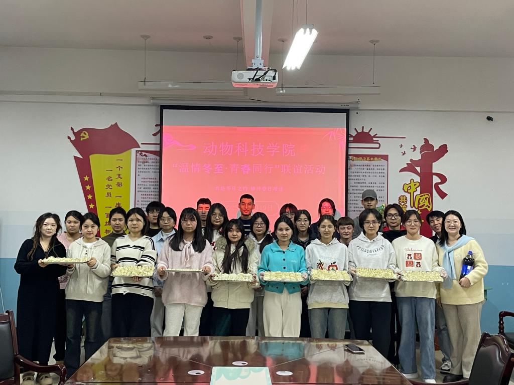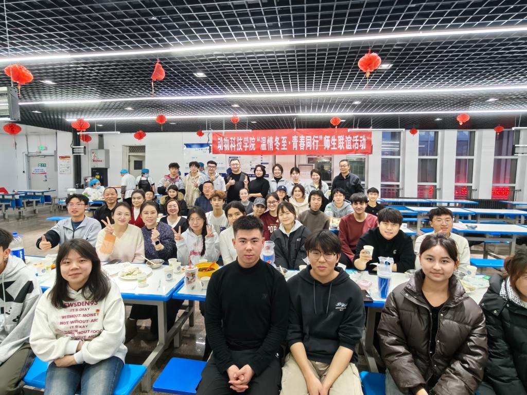 岁末天寒,冬至安康。12月19日,动物科技学院“温情冬至·青春同行”主题联谊活动在校本部兴禾园餐厅二楼与东泉校区二楼会议室同步暖心开启。动物科技学院党委书记丑武江、学校工会副主席马勇、资产管理处副处长郭庆河、动物科技学院党委副书记刘涛等领导及师生代表齐聚一堂,共话师生情谊。