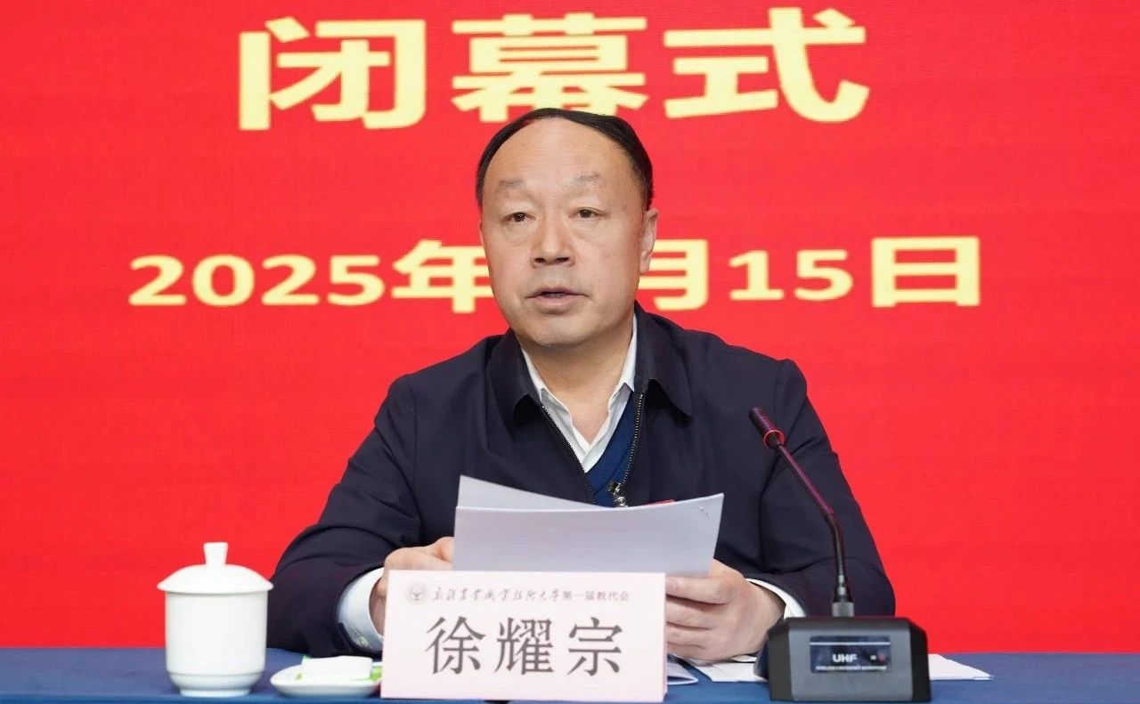 闭幕式上,徐耀宗代表学校党委向大会的胜利召开表示热烈祝贺,向出席会议的全体代表致以衷心感谢和崇高敬意,并送上新春祝福。