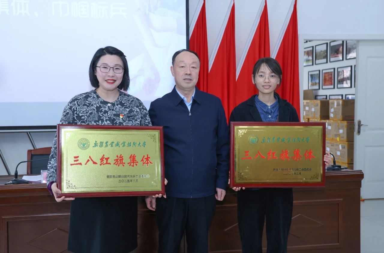 3月7日下午,新疆农业职业技术大学庆祝2025年 “三·八”国际劳动妇女节会议暨“兴农职大巾帼志 强技育才工匠心”座谈会隆重召开。学校党委书记徐耀宗,学校党委常委、副校长田晓霞出席会议。学校“巾帼标兵”、“三八红旗集体”代表、女教职工代表参加会议。