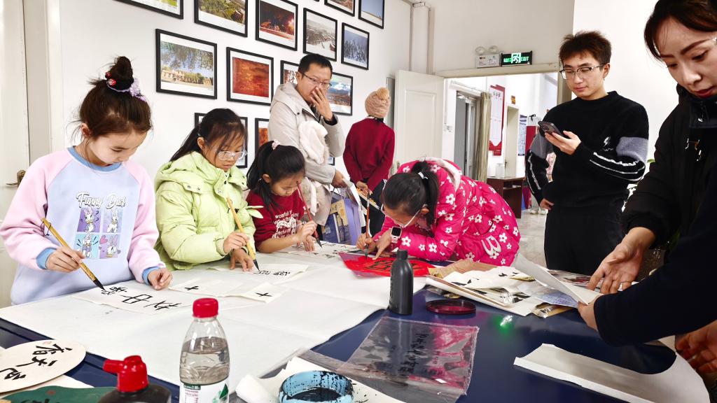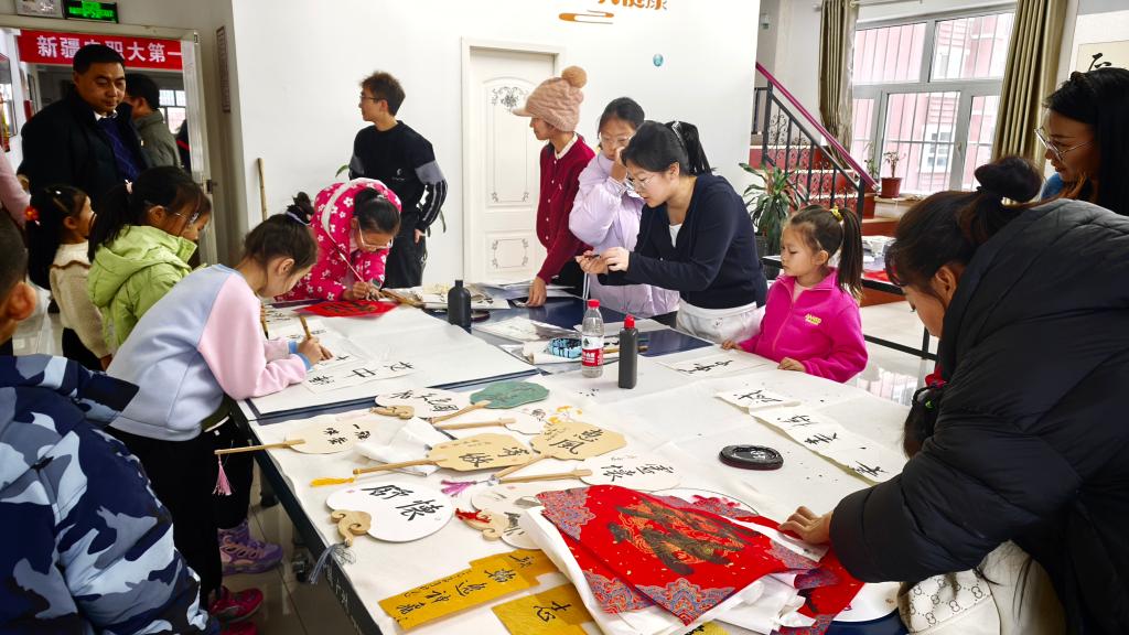 活动现场暖意融融,两大非遗体验环节让孩子们直呼“着迷”。书法课堂上,专业老师手持毛笔,从汉字演变讲到握笔、运笔技巧,孩子们听得认真,一笔一划临摹练习,墨香中感悟中华书法的横平竖直之美;非遗团扇制作区更成了创意乐园,指导老师细致演示扇面绘画、装饰粘贴技法,孩子们发挥想象,用色彩与巧思勾勒图案,亲手完成的团扇成了最特别的“非遗手作”。