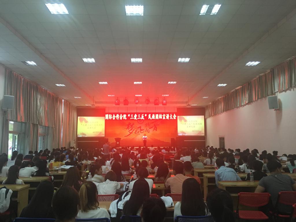 5月16日晚,分院在大学生活动中心举行了“三爱三反”民族团结主题宣讲大会,在校的2015、2016级500多名学生参加了大会。通过班级宣讲、分院预赛选拔出的6名选手上台进行了宣讲。