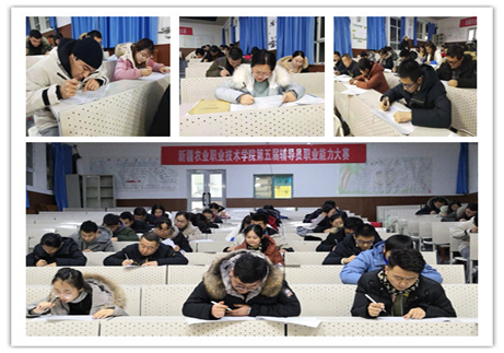 12月15日晚,在信息楼阶梯教室开展了大赛笔试环节,各位辅导员全神贯注,将自己所学理论知识,政策理解和业务知识通过笔试的方式进行展现。