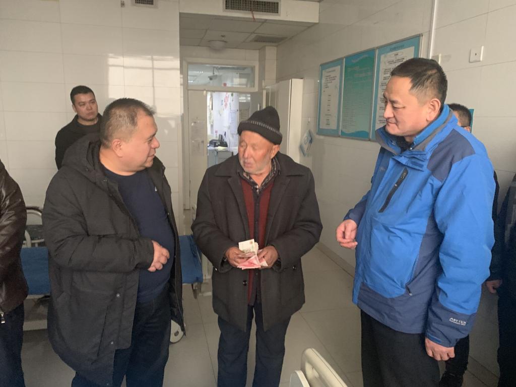 2020年1月8日,新疆农业职业技术学院继续教育分院的领导和老师从千里之外赶到和田阿里木江的病房,把关爱和温暖送给这个正在与病痛抗争,勇敢的维吾尔族小伙子。看着昔日健康、活泼、快乐的阿里木江如今在病床上瘦弱苍白的模样,老师们满眼心疼,心中很不是滋味。新疆农业职业技术学院继续教育分院正在和田地区进行大走访的17名老师纷纷解囊,自发给阿里木江捐款。艾克热木和王义伟老师代表大家把带着温度的1750元捐款和500元“育人万里行 圆梦农职院”调研资助金交至阿里木江的父母手中。