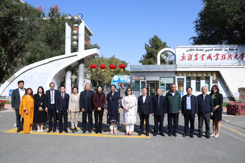 9月28日,巴基斯坦联邦教育与职业培训部国务部长瓦吉哈·卡马尔、巴基斯坦国家职业技术教育委员会主席古尔米娜·比拉尔·艾哈迈德、中巴国际产教合作联盟秘书长阿玛尔·穆罕默德及中巴产教合作卓越中心代表团一行访问我校,并出席在图书馆二楼会议室举行的2025年中巴产教合作交流新疆座谈会。自治区教育厅党组成员、副厅长王珊珊,校党委书记徐耀宗出席会议,校党委常委、副校长邓双义主持座谈会。乌鲁木齐职业大学、新疆职业大学、新疆轻工职业技术学院3所职业院校代表参加会议。