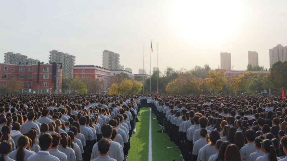 伴随着激昂的《义勇军进行曲》,鲜艳的五星红旗冉冉升起,全体师生肃穆站立,齐唱国歌,向国旗致以最崇高的敬意,表达对伟大祖国的深情热爱和诚挚祝福。
