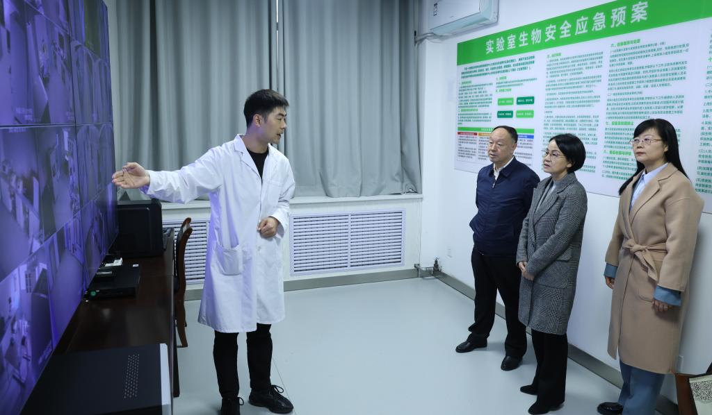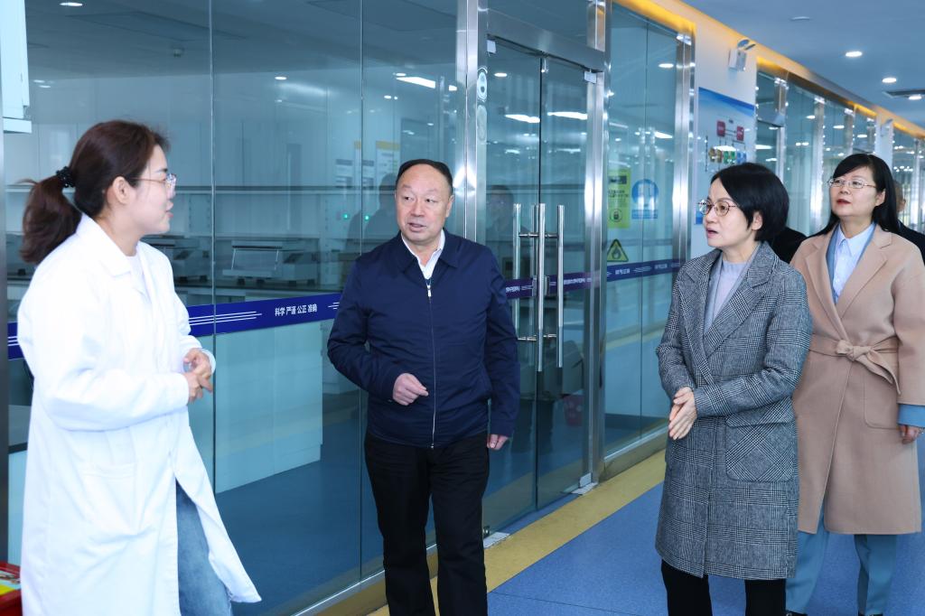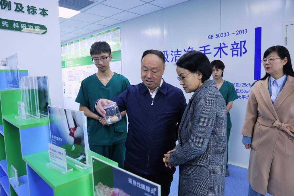 座谈会结束,徐耀宗陪同调研组一行先后到学校实验实训中心4楼动物疫病诊断中心、3楼种子检测中心、1楼宠物医院参观交流。
