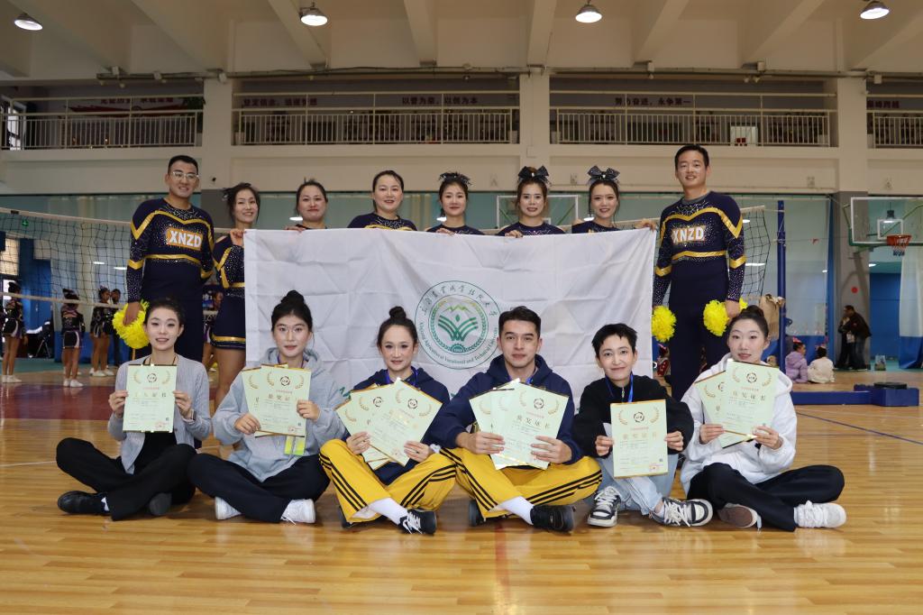2025年10月31日至11月2日,全国啦啦操联赛(乌鲁木齐站)在新疆师范大学体育馆盛大举行。来自全疆各地的啦啦操精英队伍齐聚一堂,展开了一场力与美、青春与激情的激烈角逐。我校啦啦操队在领队马勤、教练员魏红娇老师的带领下,奋勇拼搏,最终在多个项目中斩获佳绩,为学校赢得了荣誉,展现了新农职学子昂扬向上的精神风貌。