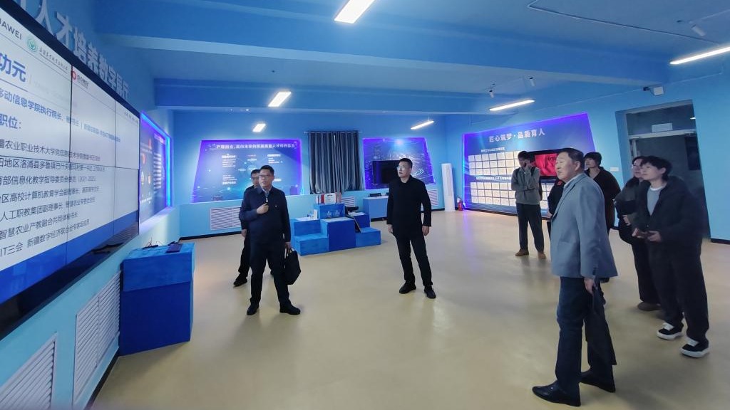 代表团参观智慧农业展厅,华为ICT展厅,系统展示了在数据通信、云计算、人工智能等前沿技术领域的先进设备和教学平台。