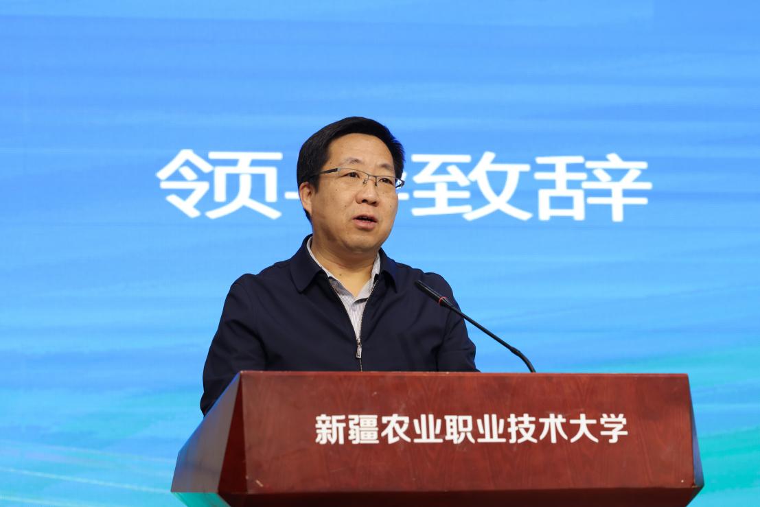 邓双义代表学校致欢迎辞。他强调,“强国必先强农,农强方能国强”。他回顾了共同体在115家理事单位协作下,在联合育人、技术攻关、平台建设等方面取得的显著成效,同时指出我国在种质资源挖掘、生物育种等领域仍面临挑战,亟需复合型高水平种业科技人才。面对《加快建设农业强国规划》的新要求,他表示新疆农业职业技术大学将与各成员单位携手,深化协同机制,优化人才培养,为现代农业发展提供坚实支撑。