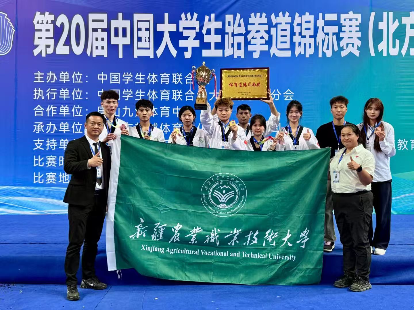 此次征战全国大赛并取得历史性突破,不仅是我校跆拳道项目发展的里程碑,更是我校深化体育教育改革、培育学生全面发展的生动体现。队员们用卓越的表现诠释了“润德砺能、和以至善”的精神内涵,展现了新时代新疆农业职业技术大学学子的昂扬风貌和顽强斗志!