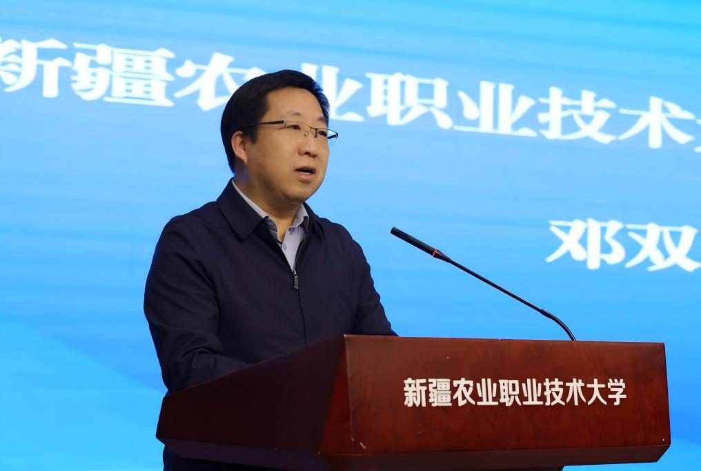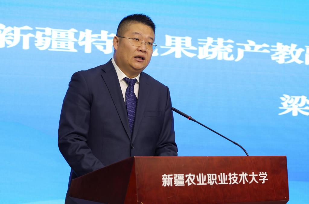 新疆农业职业技术大学党委常委、副校长邓双义代表学校致欢迎辞。在致辞中表示,学校作为共同体牵头单位之一,将与各成员单位一道,持续强化政校、校行、校企、校际合作联动,以高质量职业教育为新疆特色产业发展输送更多技术技能人才。新疆果业集团有限公司党委副书记、董事、总经理、共同体理事长梁超在致辞中强调,新疆果业集团作为共同体的发起单位,将继续发挥龙头企业的引领作用,与各位伙伴一道,以更高站位、更宽视野、更实举措,共同推动共同体建设不断迈上新台阶,为新疆特色果蔬产业高质量发展,为建设教育强国和人才强国贡献更大力量!