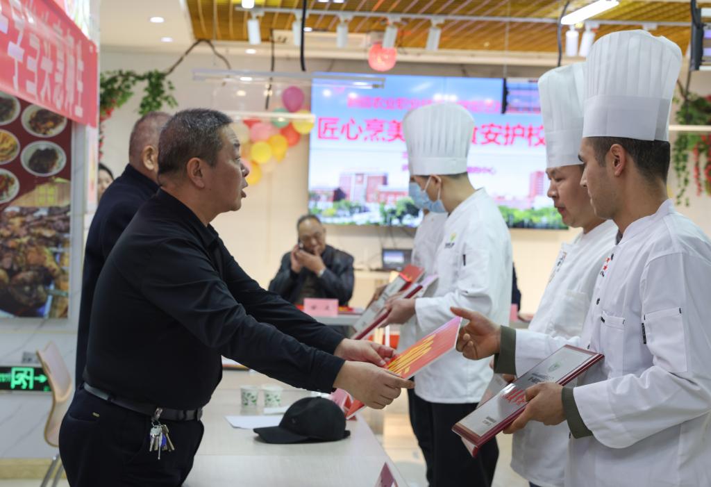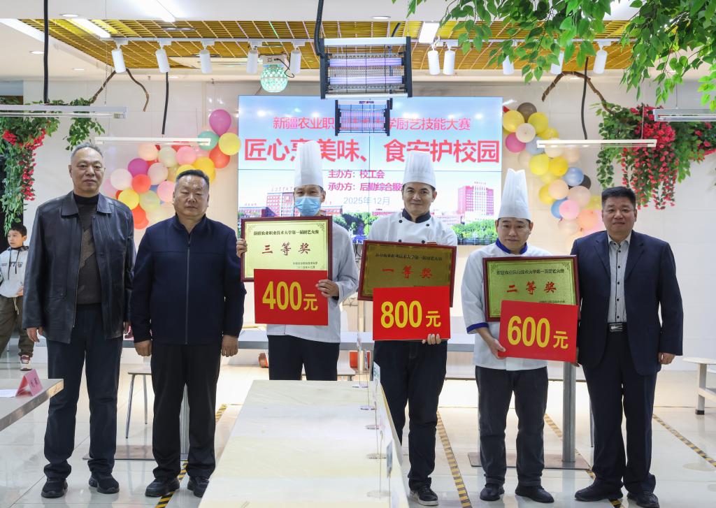 为进一步提升学生食堂餐饮服务质量,激发厨师队伍创新活力,全面检验后厨团队专业素养,12月20日,我校隆重举办“匠心烹美味,食安护校园”食堂厨师厨艺大赛。大赛由校工会主办,后勤综合服务中心承办,邀请昌吉国家农业科技园区市场监督管理局负责人刘颖、教职工及学生代表出席活动,各食堂参赛厨师同台竞技,上演了一场色香味俱全的厨艺盛宴。