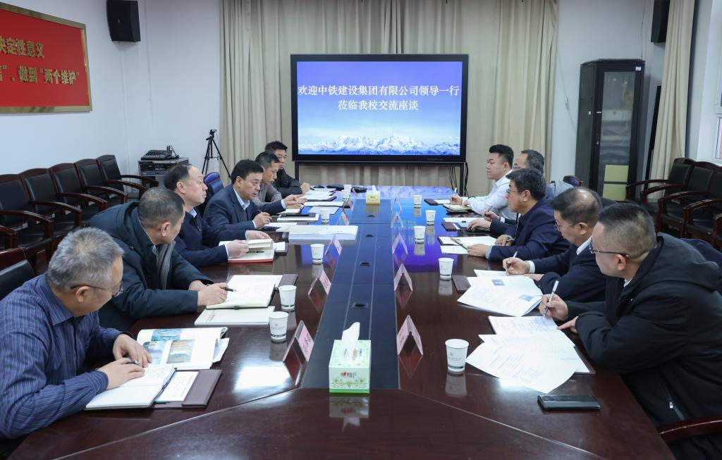 1月8日,中铁建设集团有限公司副总经理郝长江一行莅临学校调研。双方在图书馆三楼会议室围绕校企合作、项目建设等方面座谈交流。学校党委书记徐耀宗出席座谈会,校党委常委、副校长杨璇主持座谈会。