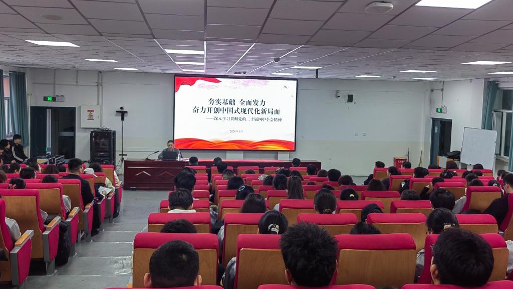 2026年1月8日下午,学校党委副书记、副校长(主持行政工作)王海波同志围绕“深入学习党的二十届四中全会精神”,为信息技术学院、国际合作学院、党委办公室180余名师生讲授思政课,潘新哲同志主持。