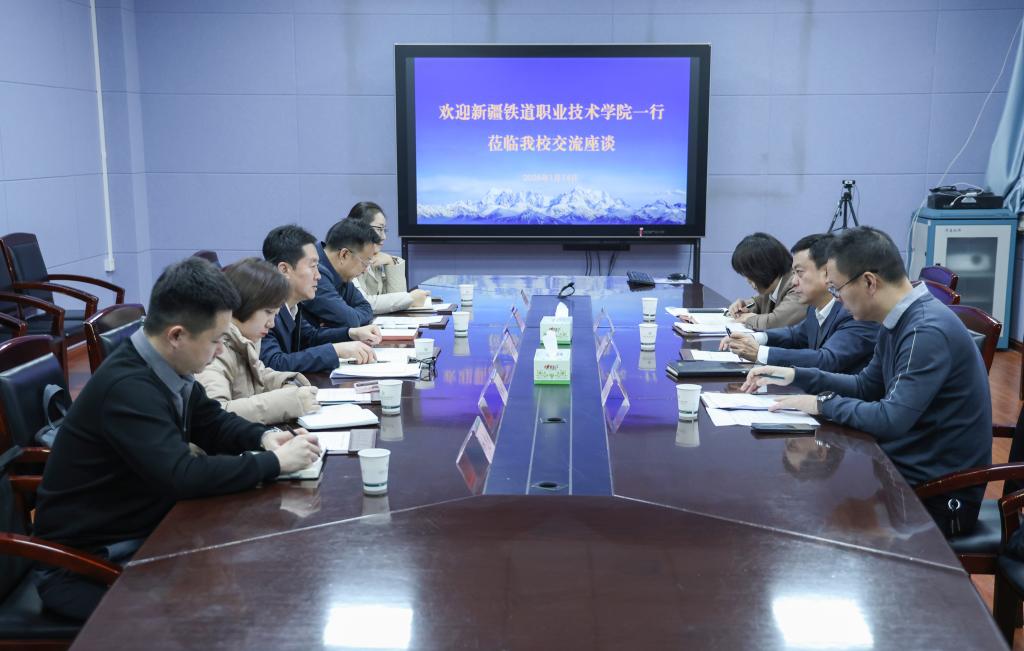 1月14日,新疆铁道职业技术学院党委副书记万生志一行莅临学校调研。双方在图书馆二楼会议室交流座谈。学校党委常委、副校长杨璇参加座谈会,教务处(招生就业处)处长柳旭伟主持座谈会。