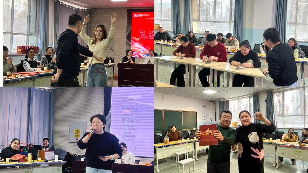 阿卜杜萨拉木、吐尔逊娜依两位老师献跳新疆舞蹈《麦西来甫》;游戏环节,笑声不断;李文静老师一首《外婆的澎湖湾》,欢快旋律点燃全场。
