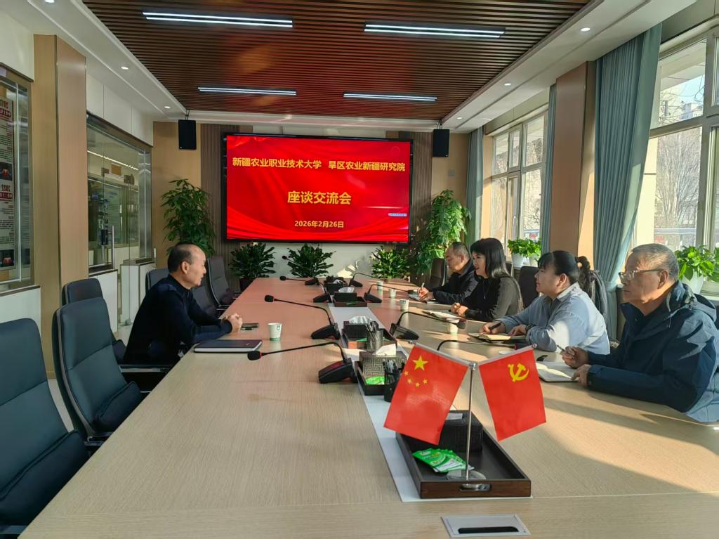 2026年2月26日,学校科学技术处处长王新燕、生物科技学院院长贾丽慧、棉花工程技术中心主任宋武研究员、齐士发教授及智慧农业教研室主任陈婧一行,前往西北农林科技大学旱区农业新疆研究院进行交流访问,双方围绕项目合作、实验室建设、人才培养等事宜展开深入探讨,并达成多项初步合作意向。