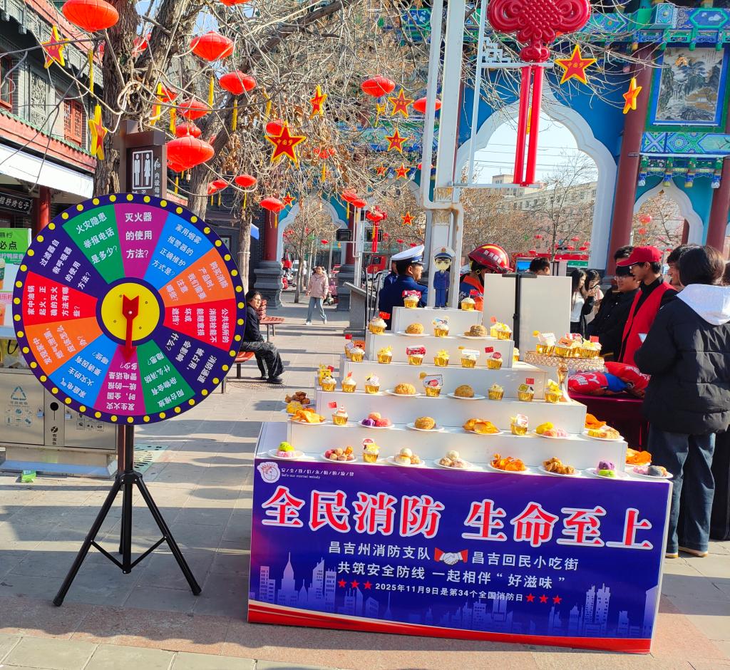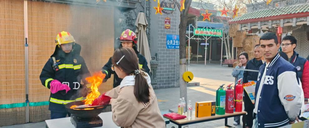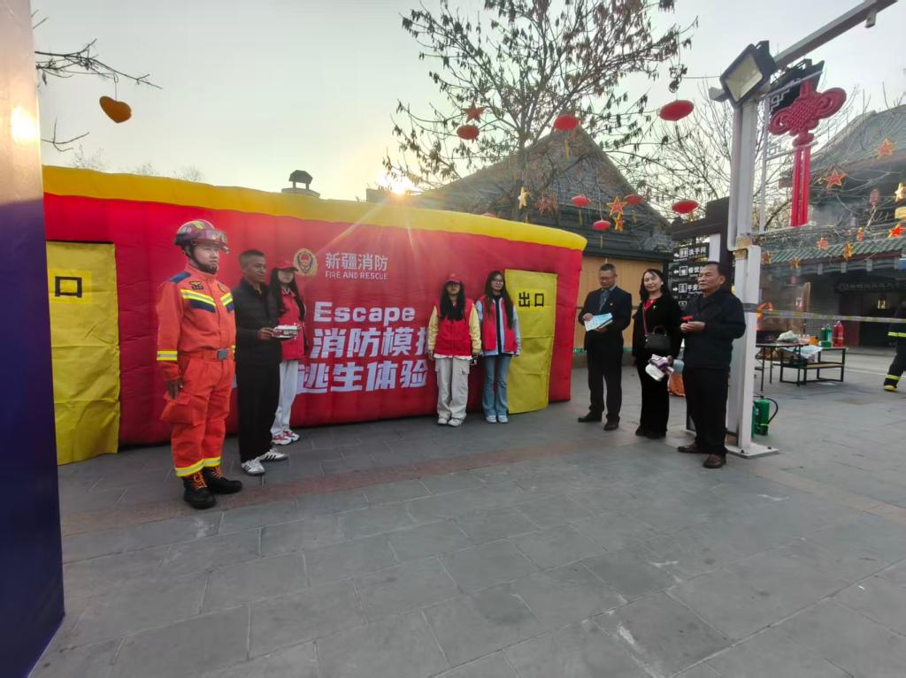 在第34个全国消防日来临之际,我校围绕“全民消防,生命至上——安全用火用电”主题,选派百余名师生赴昌吉回民小吃街参加昌吉州消防宣传月活动启动仪式,现场沉浸式学习体验安全用火用电,由此正式拉开2025年新疆农业职业技术大学消防宣传月系列活动序幕。在昌吉回民小吃街,我校师生代表现场参加了特色体验区活动,涵盖消防安全有奖知识竞答、消防装备展示、灭火实操、火灾逃生演练等项目,从理论知识到实践技能,全方位满足师生的学习需求。