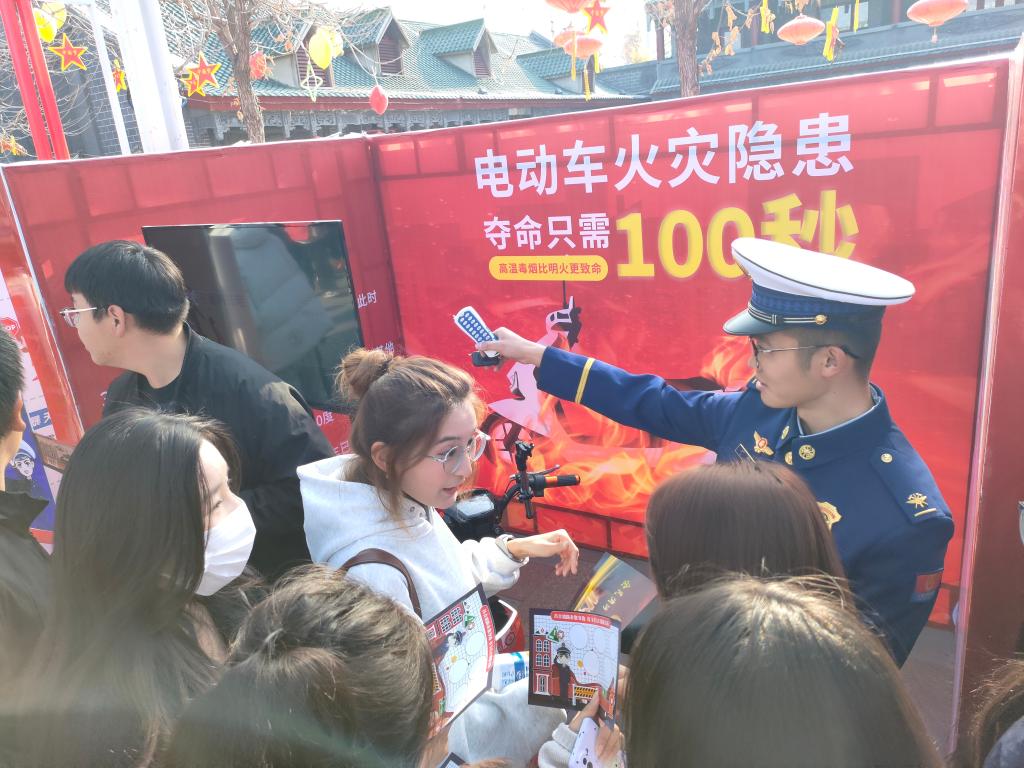 参加特色体验区活动:师生代表与消防安全宣传员现场互动电动车火灾隐患的危害及防范措施