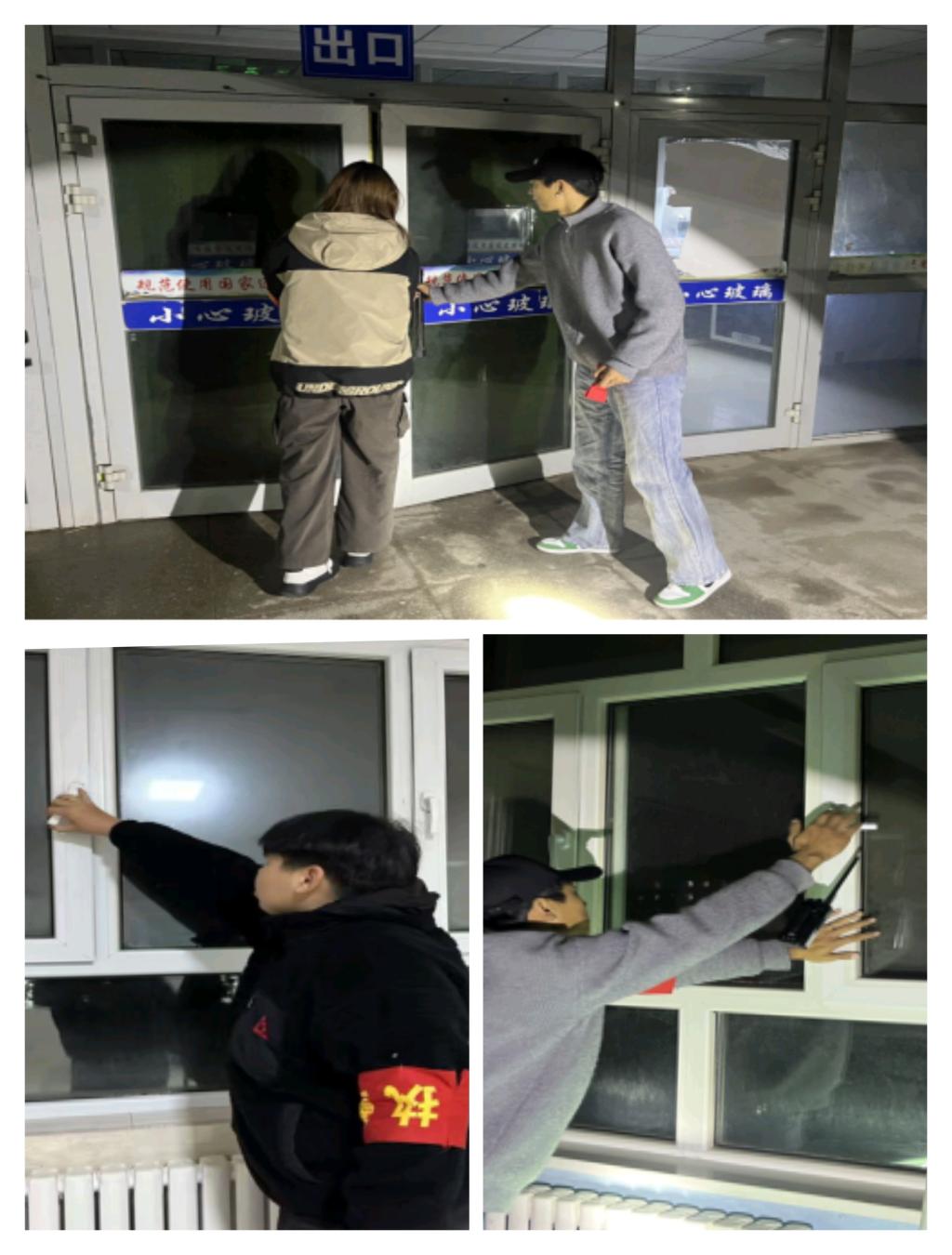 11月22日晚间,在接到雨夹雪气象信息后,保卫处会同分校区基地安保科组织校园护卫队志愿者对教学楼、实训楼、体育馆等全面排查。排查过程中发现个别窗户和楼栋进户门未关闭,为防止楼栋内消防喷淋设施和暖气冻裂,及时关闭门窗。同时提醒广大师生,在恶劣天气来临之际,要加强安全防范意识,共同维护校园安全。