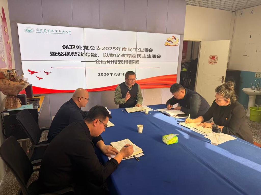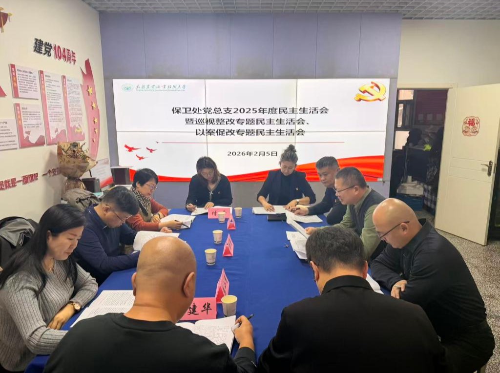 2026年2月5日,正值学校寒假期间,保卫处党总支适时召开2025年度民主生活会暨巡视整改专题民主生活会、以案促改专题民主生活会。学校督导组彭亮书记一行4人及纪委办公室工作人员全程到会指导,彭亮书记作点评讲话。保卫处党总支全体班子成员参加会议,会议由党总支书记庄道坤主持,乌昌各校区安全保卫党支部书记列席会议。