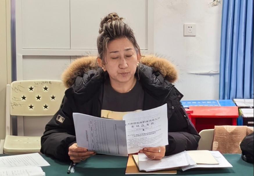 在领学促学环节,阿依古丽·达吾提同志首先传达学习了《关于召开2025年基层党组织组织生活会和开展民主评议党员的通知》精神,并带领全体党员重温了合格党员的“四个标准”,强调召开高质量组织生活会的重要意义,要求全体党员要以严肃认真的态度投入到会前学习中。党支部委员和党员代表依次原文领学了必学篇目。