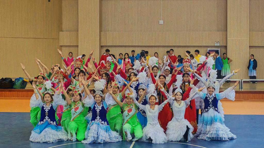 作为开场节目,我校学生带来的歌舞《金色希望》点燃现场,演员身着多民族服饰起舞,既展民族风情,又诠释“民族团结一家亲”的美好图景。