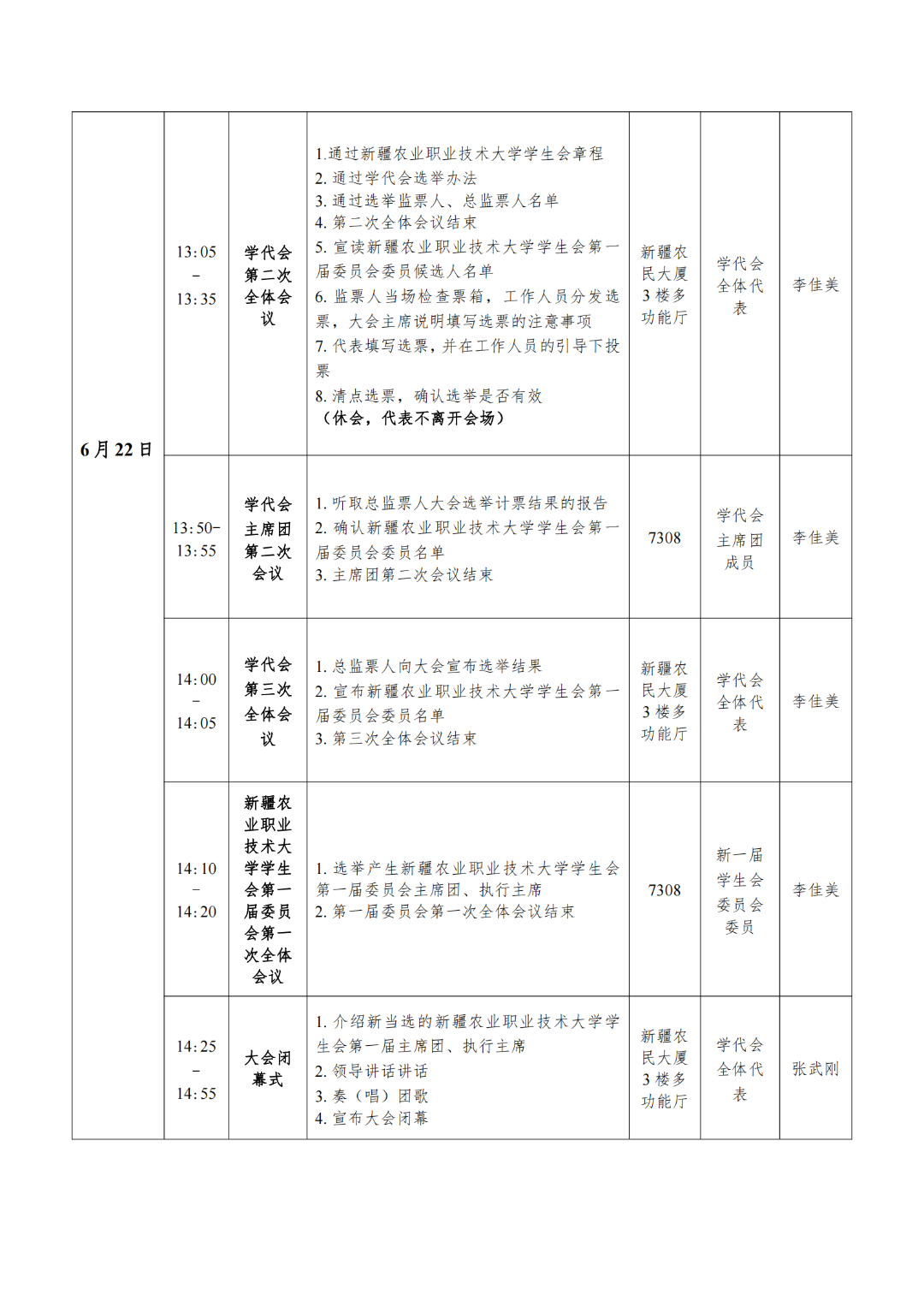 3.选举产生新一届学生会组织主席团成员;