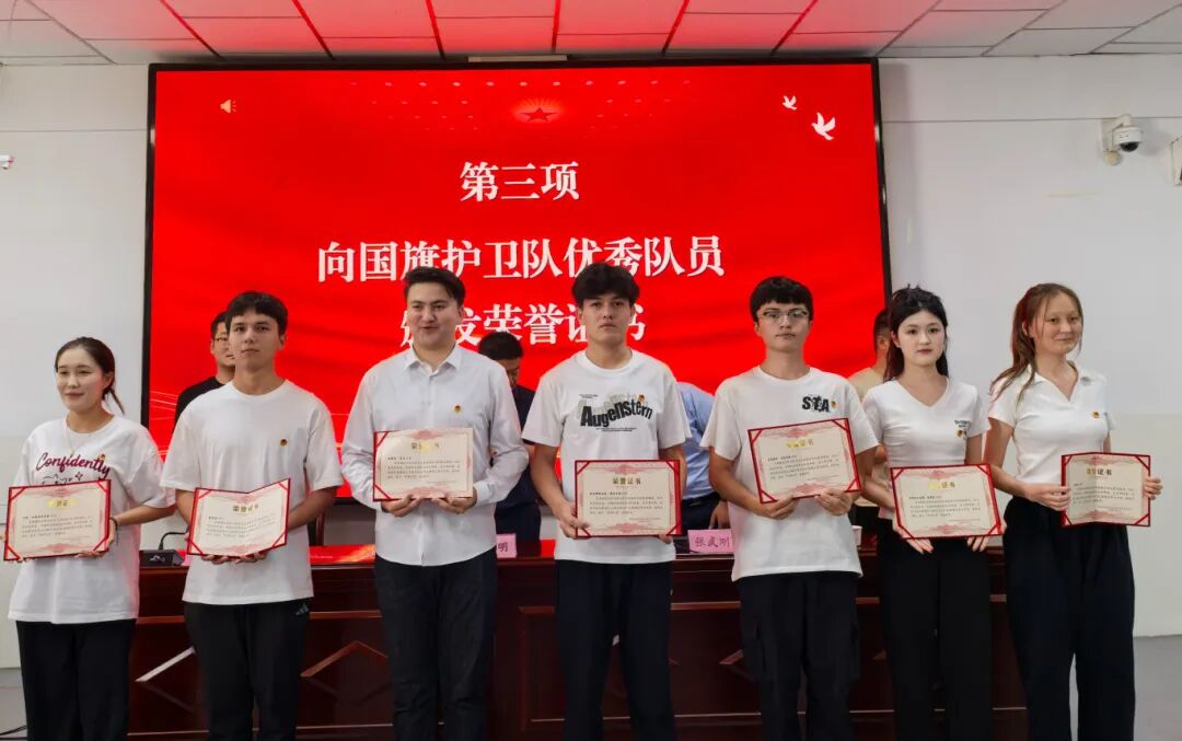 音提扎尔・塔依尔分享到:“加入校国旗护卫队后,我懂得了坚持与责任的意义。今后的学习生活中我会将对国旗的赤诚,化作学习和生活的动力,带动身边人一起爱国荣校。”