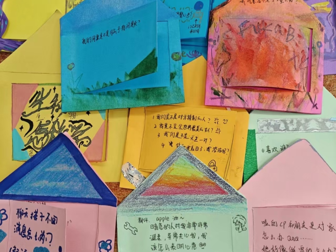 走廊宣传栏划分 “心理知识科普区”“情绪调节小技巧区”“学生暖心留言区” 三个板块,其中 “学生暖心留言区” 鼓励学生写下正能量句子,形成互动式心理关怀空间。