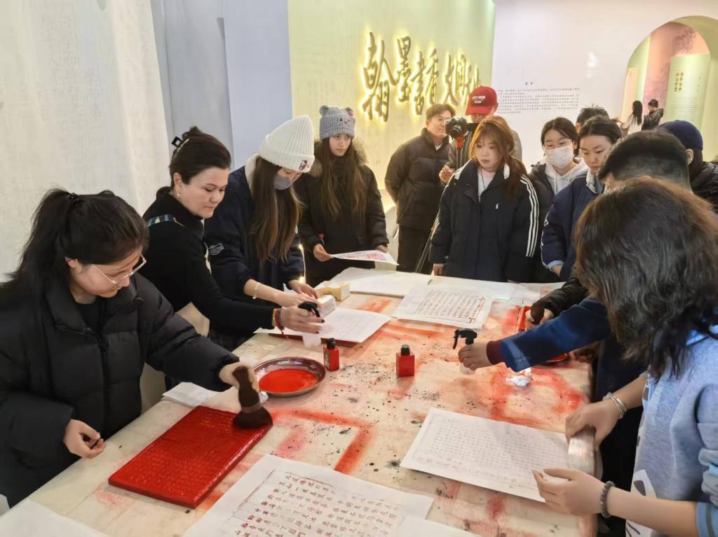 为让文化体验更具深度,活动特别设置了拓印实践环节。在图书馆专业工作人员的指导下,学生们亲手操作拓印工具,将碑刻中的文字与图案复刻成形,在指尖的触感中传承非遗技艺,在实践操作中加深对新疆传统文化的理解与认同。