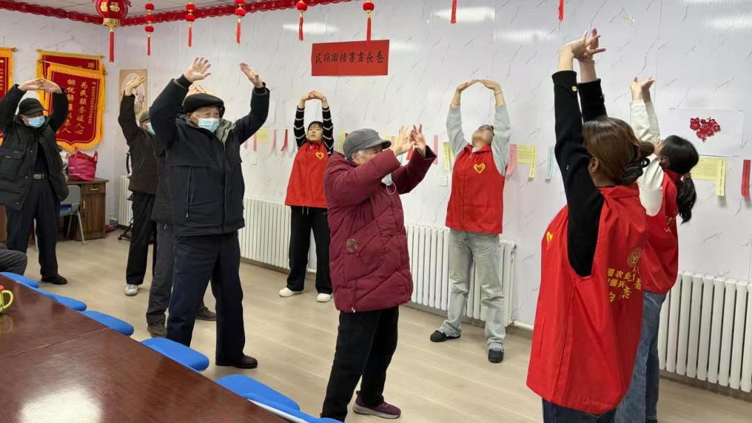 养老专业师生结合老年群体养生需求,开展八段锦公益教学。志愿者们耐心示范动作、逐一纠正姿势,用通俗易懂的语言讲解功法要点与健康益处,引导老人舒缓筋骨、调养身心。老人们跟着节奏舒展肢体,在轻松愉悦的氛围中感受传统养生文化的魅力,现场掌声与笑声不断。