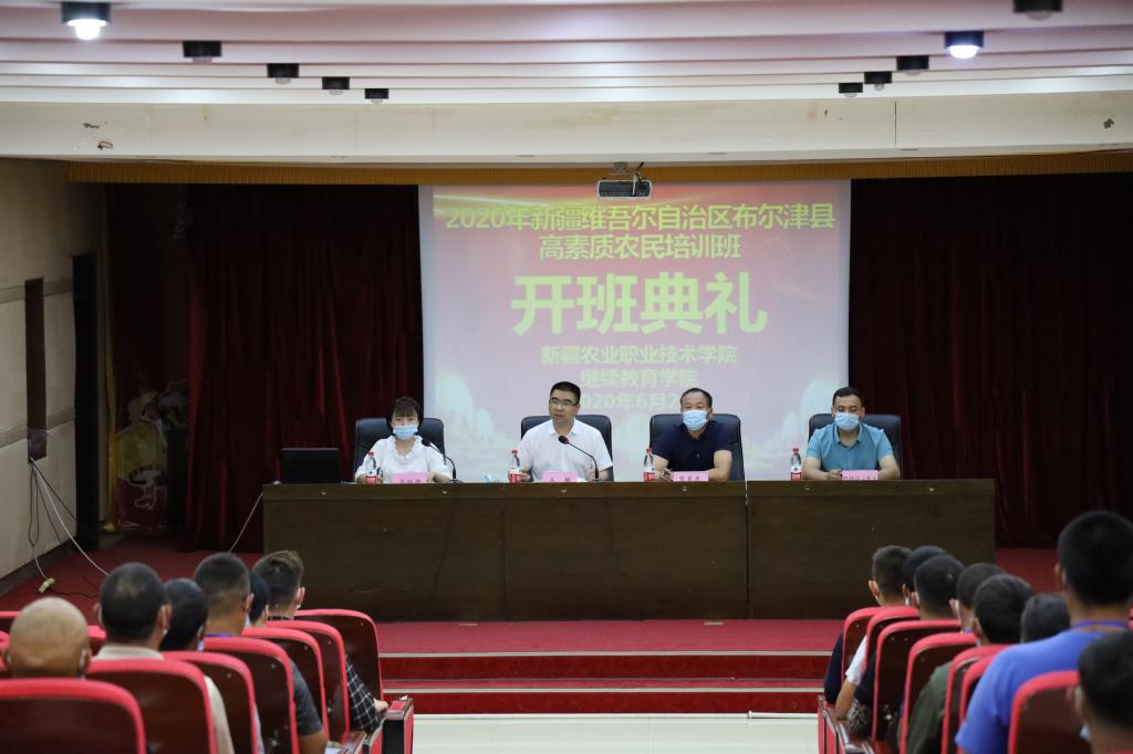 6月20日,2020年新疆维吾尔自治区布尔津县高素质农民培训班开班仪式在布尔津县党校举行。布尔津县委常委、组织部部长王敏出席仪式并作重要讲话,布尔津县农业农村局书记弯军民出席仪式,新疆农职院继续教育分院培训科副科长阿迪江·牙生致辞,新疆农职院继续教育分院培训科高丽亭主持仪式。