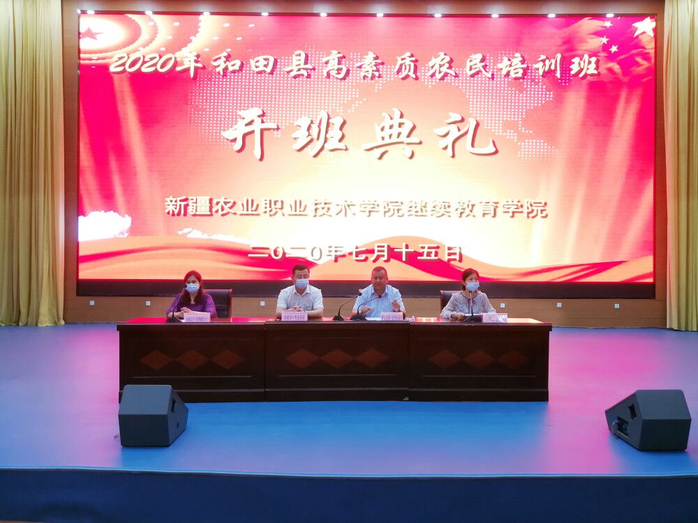 7月15日,由新疆农业职业技术学院承办的2020年和田县高素质农牧民培训班在和田县技工学校开班,和田县农业农村局局长穆太力普·麦提托合提、新疆农业职业技术学院继续教育学院副院长哈德尔·阿合买提,还有来自和田县各乡镇的390名学生参加了开班典礼,开班典礼由新疆农业职业技术学院继续教育学院培训科老师王燕主持。