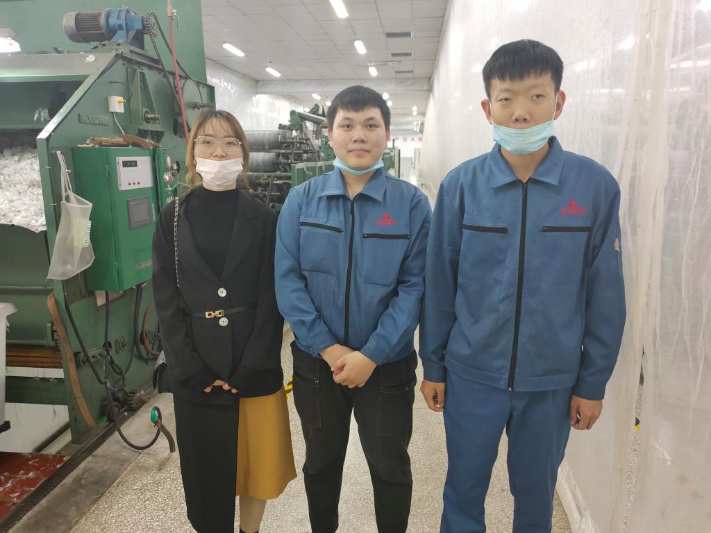 刘逍老师来到天山纺织、恒特精工等企业,深入考察学生的工作岗位以及食宿环境,叮嘱学生疫情期间注意个人防护,对于老师的到来,同学们感到非常的激动和亲切,积极与老师分享了实习期间的感悟与体会。天山纺织负责人何主任高度认可和表扬了我系学生的综合素质和专业精神,认为我系学生学习认真,责任心强,能够在短时间内独立担任各岗位主要工作任务,能够遵守行业规章制度,希望在今后继续保持良好合作势头,推动校企合作向纵深发展。陈佳慧老师和贾阳老师看望在芒果爱车实习的学生,纷纷表示目前大家实习状态良好,都能够较好适应实习生活,在接下来实习过程中同学们将继续保持良好心态,加强自身理论学习和强化操作技能训练,提升综合素质。同时老师不断勉励同学们,要虚心学习,努力克服各种困难,为自己的全面成才打好基础。老师特别强调,在工作的同时更要注重安全。
