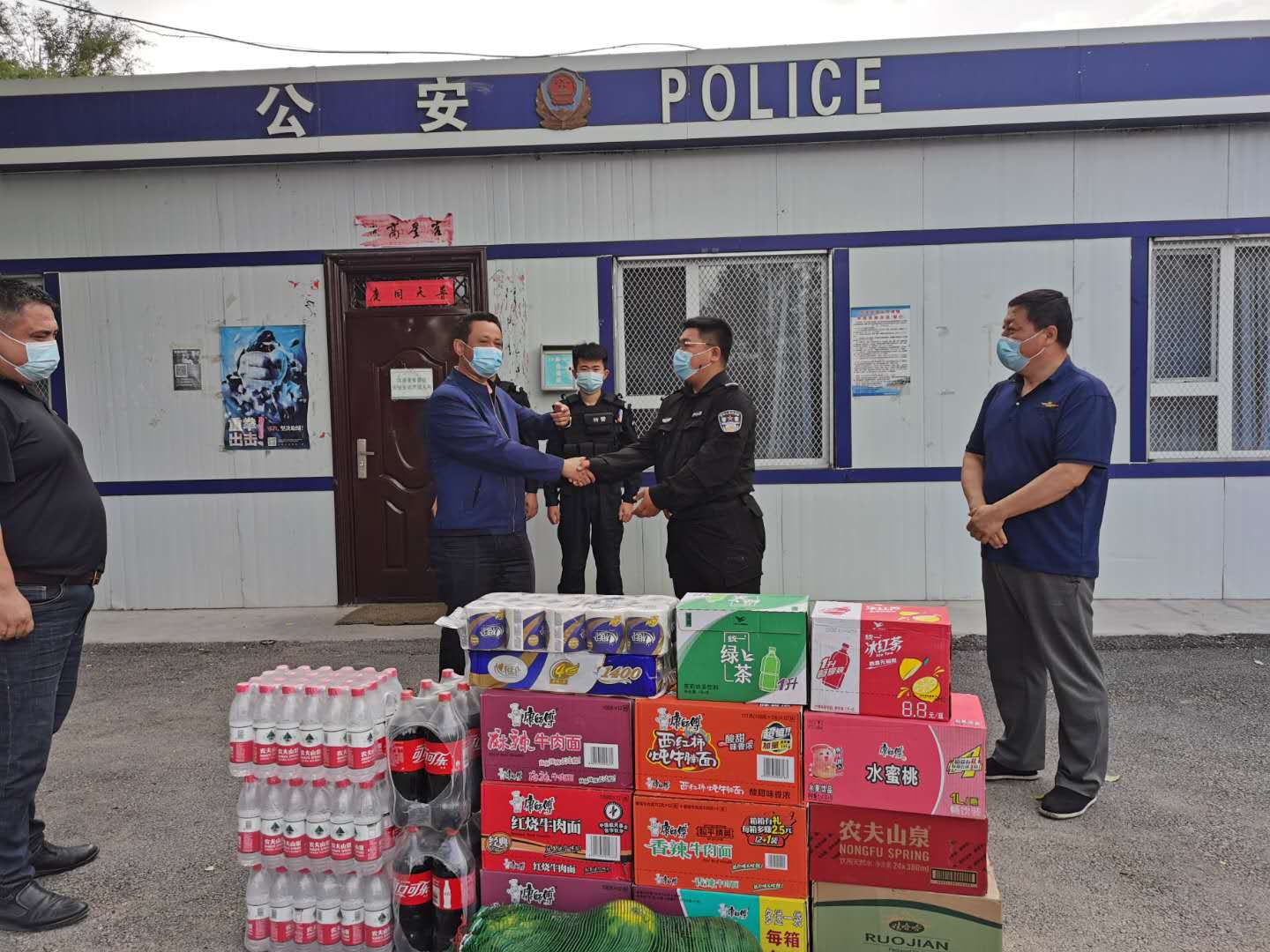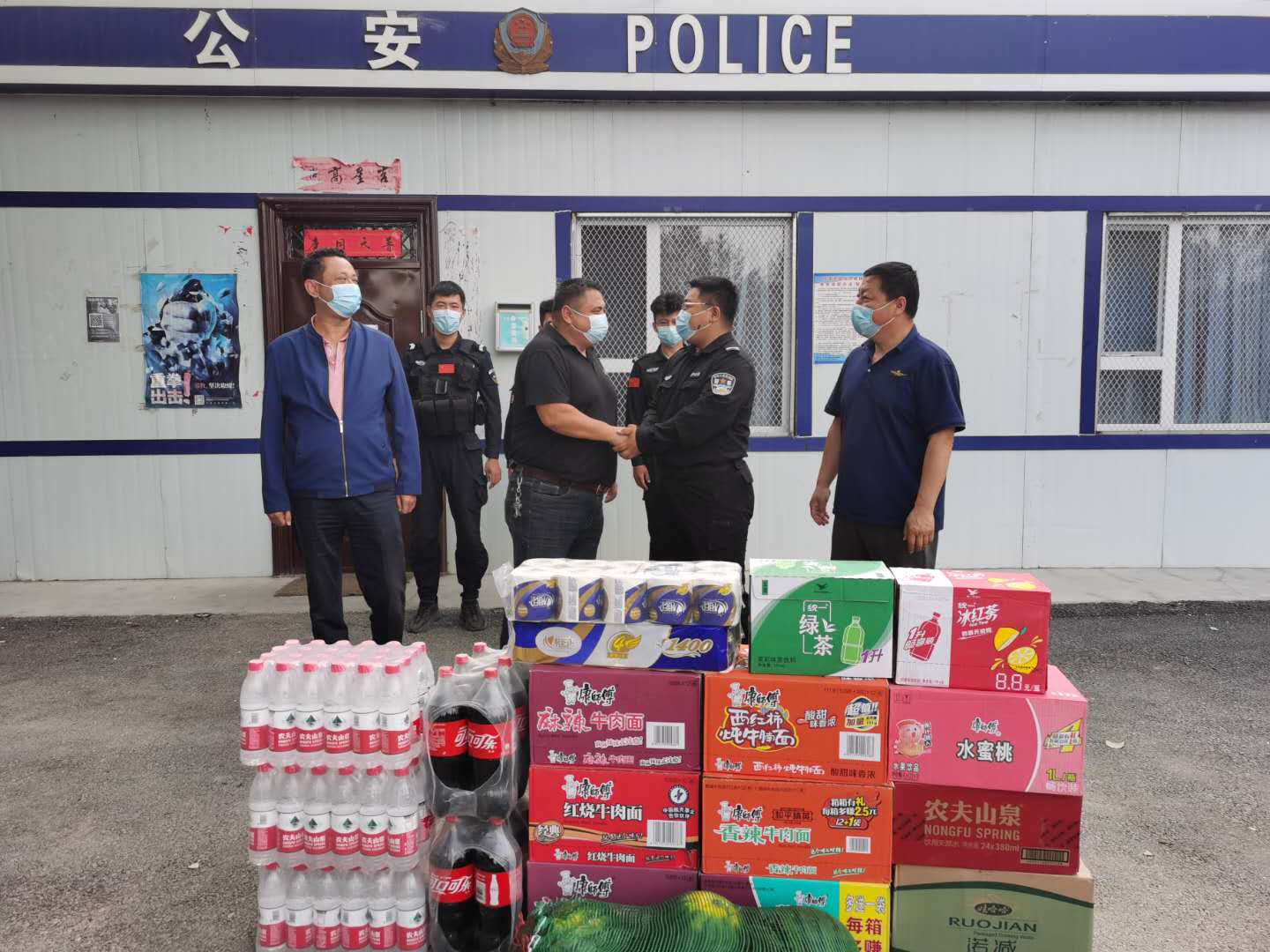 炎炎夏季即将来到,为感谢东泉校区便民警务站民警长期奋战在一线建设平安校园,6月9日上午,新疆农职院继续教育分院院长阿不都艾尼、副院长艾克拜尔、保卫科长赵文刚、后勤科长周晓岚、学生科长王坤,到警务站慰问民警工作人员。