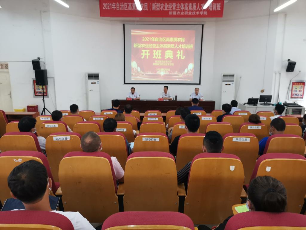7月8日,2021年自治区新型农业经营主体高素质人才培训班第二期开班典礼在新疆农业职业技术学院东泉校区举行。自治区农业农村厅党组成员、副厅长王春光、新疆农业职业技术学院院长李京田出席开班典礼。自治区农业农村厅政策与改革处处长王勇主持开班典礼。