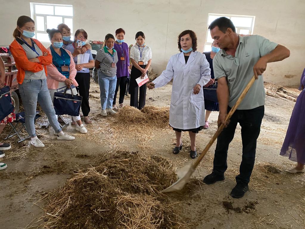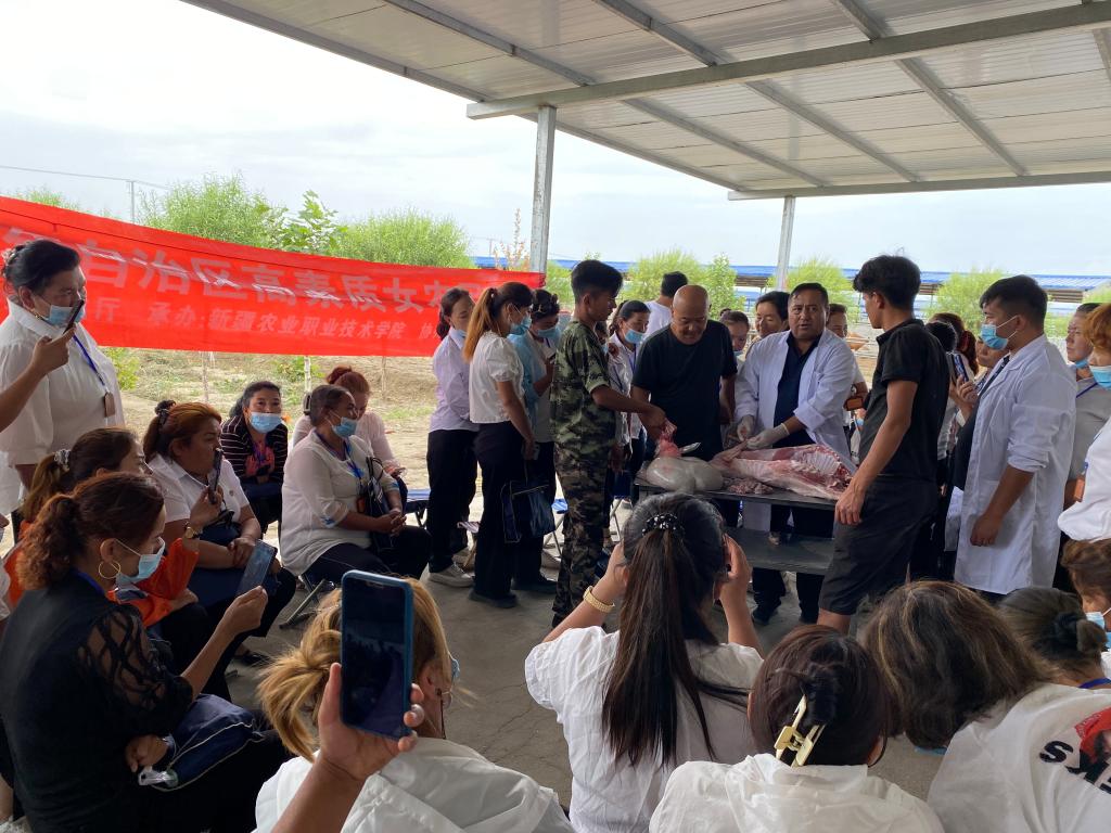 为认真贯彻落实中央农村工作会议、中央人才工作会议,以及第三次中央新疆工作座谈会精神,培养女性农民现代农业理念、文化科技素质和生产经营管理能力,提高女性农民生产实用技能水平,充分发挥“妇女能顶半边天”的作用,在自治区农业农村厅的高度重视和大力支持下,新疆农业职业技术学院于2022年6月12日至23日在沙雅县海楼镇海楼村开展了为期12天的自治区高素质女农民培训。此次培训由59名从事牛羊养殖的女性养殖户、养殖能手和有养殖意愿的女农民参加。